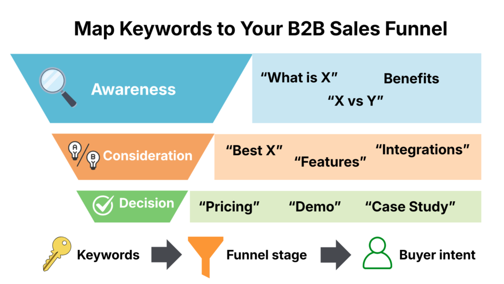 Here’s a practical way to connect keywords to your B2B sales funnel: